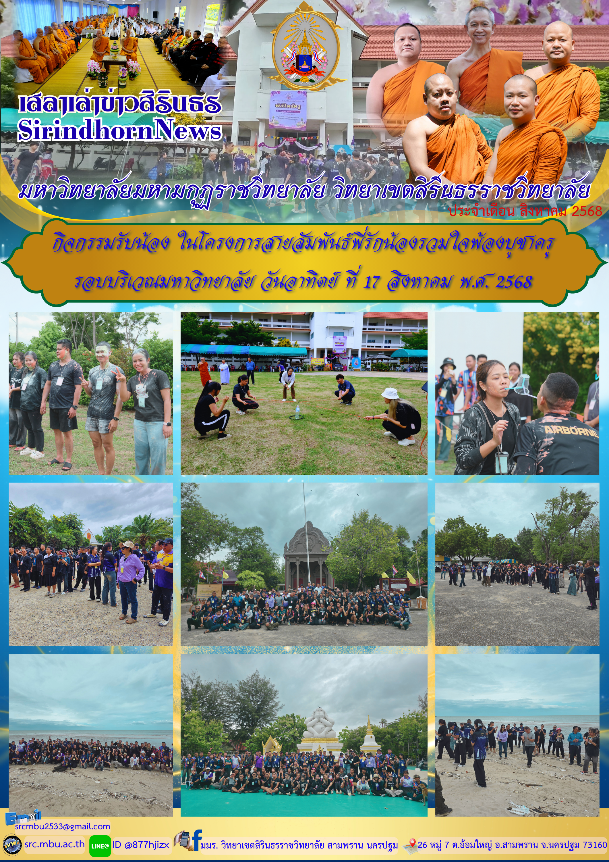 2 กันยายน 2568เสลาเล่าข่าวสิรินธร กิจกรรมรับน้อง ในโครงการสายสัมพันธ์พี่รักน้องรวมใจพ้องบูชาครู
